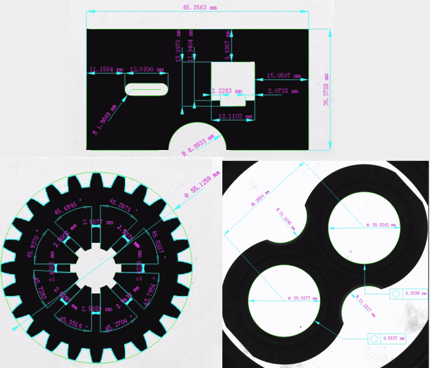 可一键测量手机中框、手机玻璃、轴承、密封垫、断路器、齿轮、磁性材料、机械、电子、模具、注塑、精密冲压件、接插件、连接器、印刷电路板等一键完成所有尺寸测量,一秒内即可完成测量,无需等待!